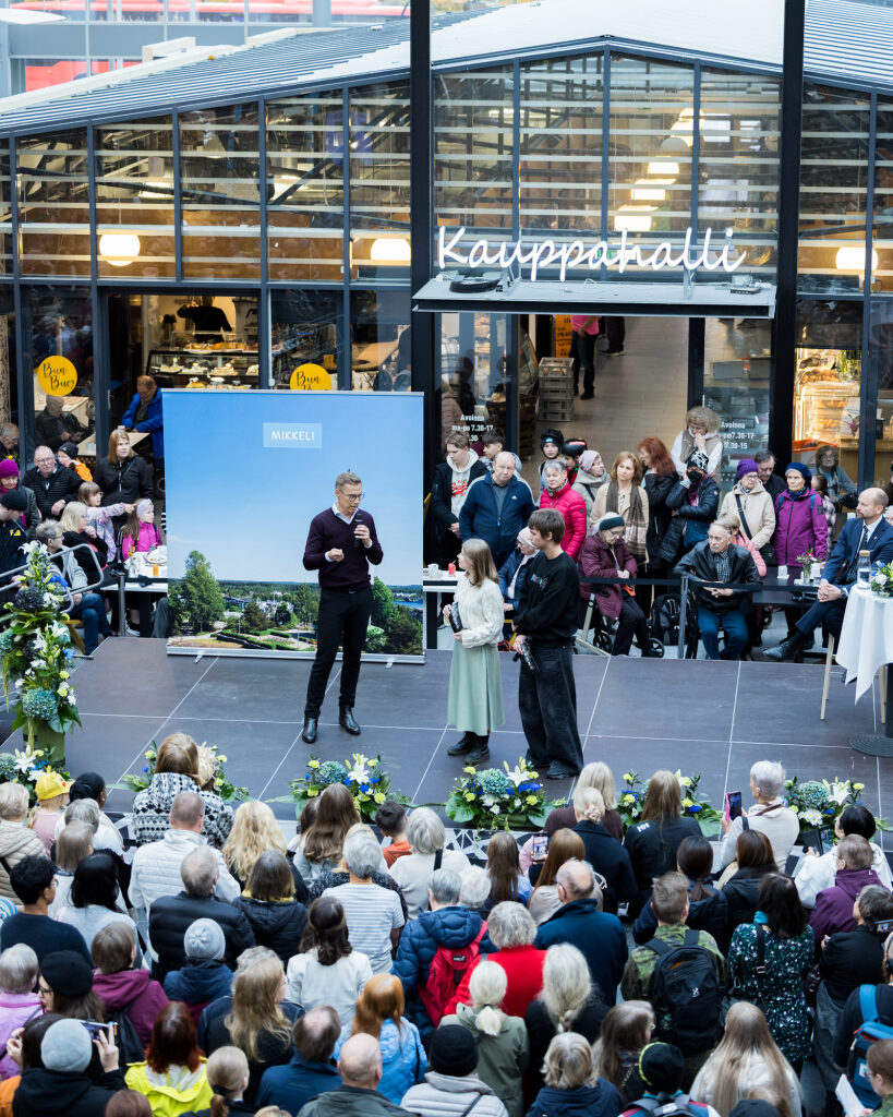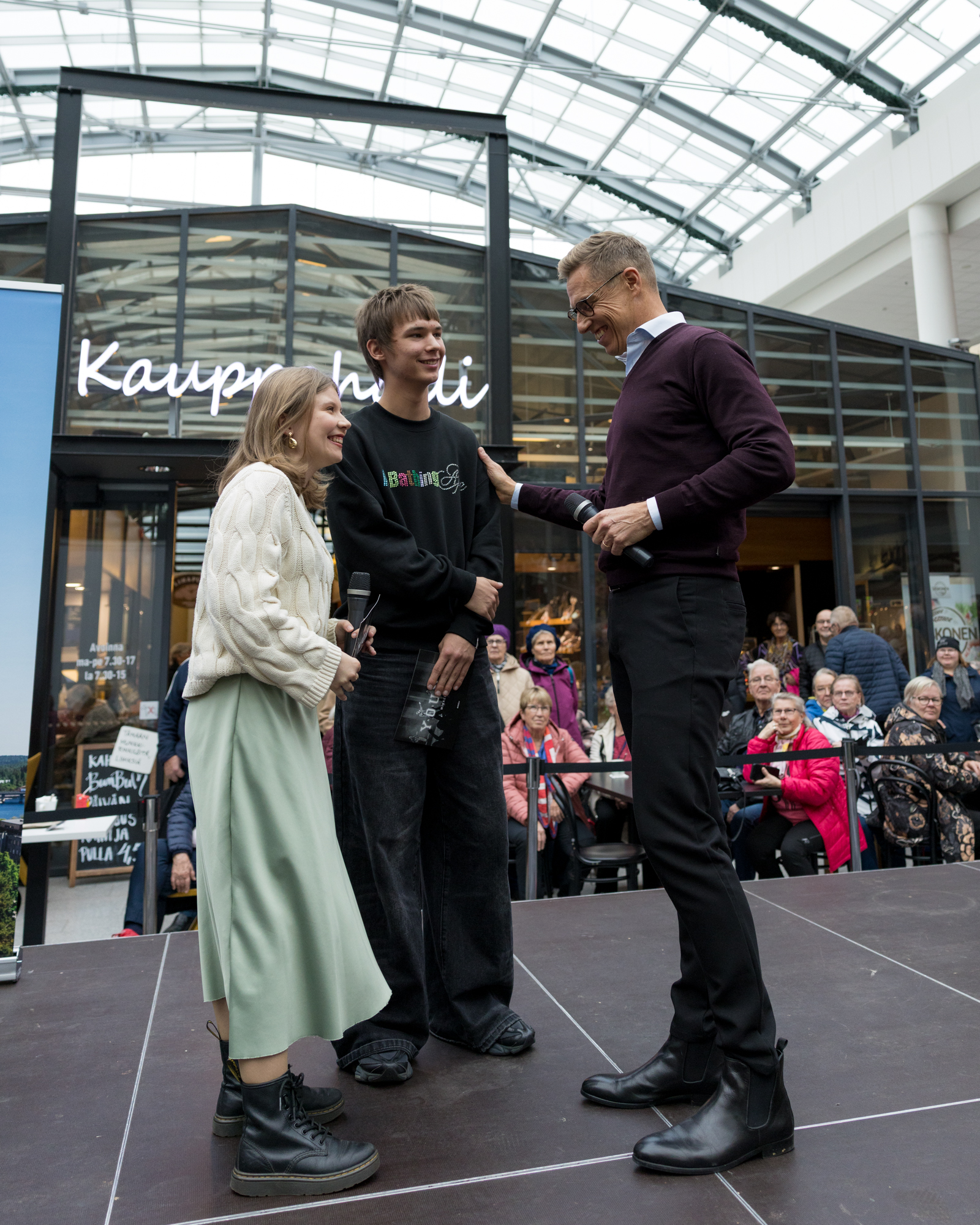 Kouluvierailulta presidentti siirtyi Kauppakeskus Stellaan, jossa presidentti tapasi mikkeliläisiä avoimessa yleisötilaisuudessa. Presidenttiä haastattelivat Olivia Salminen sekä Toivo Tiihonen Mikkelin nuorisovaltuustosta.