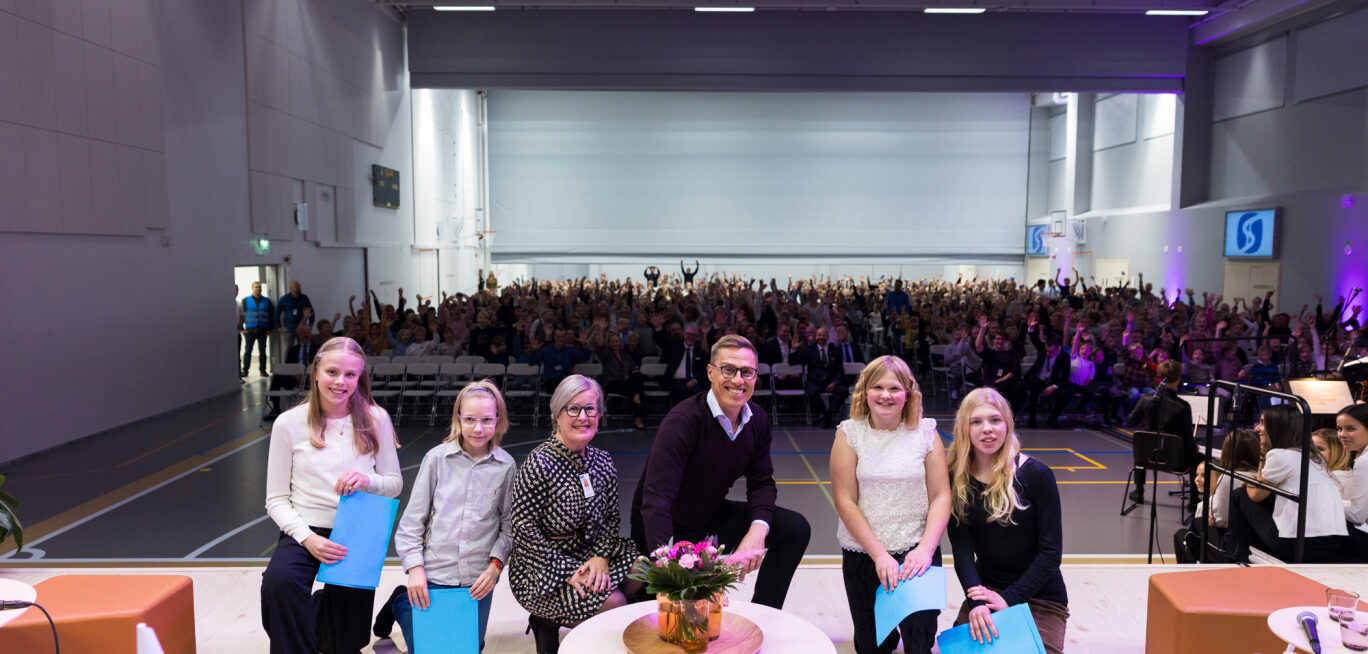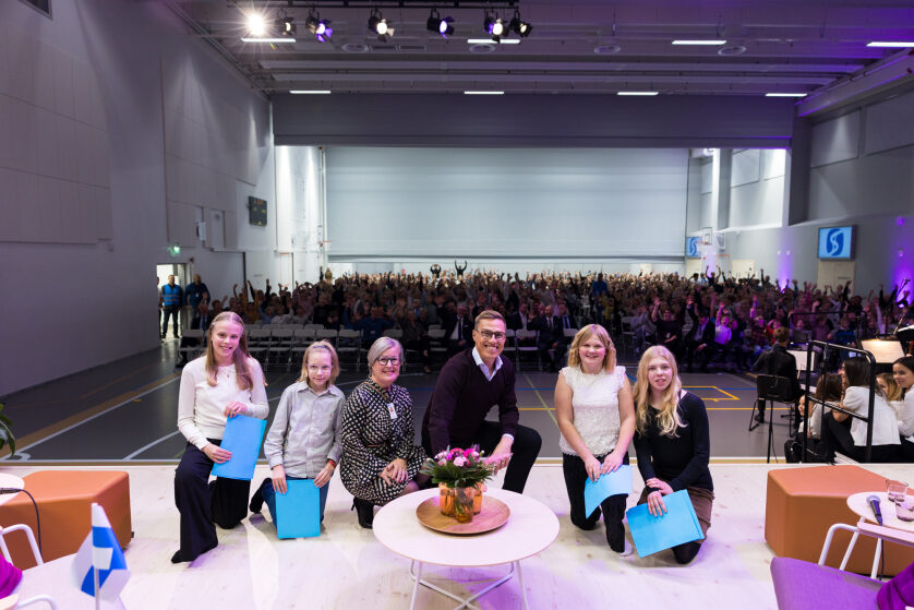 Iltapäivällä presidentti Stubb vieraili Saimaanportin yhtenäiskoulussa, jossa ohjelmassa oli oppilaiden esityksiä ja haastattelu. Oppilaat kysyivät muun muassa presidentin työtehtävistä sekä mieleenpainuvimpia kokemuksia presidenttinä.