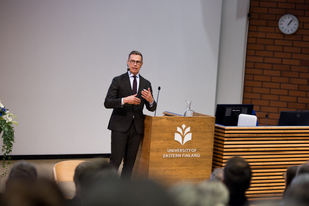 Koulutus näkyi myös keskiviikkona Kuopiossa, kun presidentti Stubb piti yleisöluennon Itä-Suomen yliopiston Kuopion kampuksella ja tutustui pelastusalan koulutukseen Pelastusopistolla. Presidentti kiitti Pelastusopiston henkilöstöä hienosta työstä pelastusalan koulutuksen eteen: