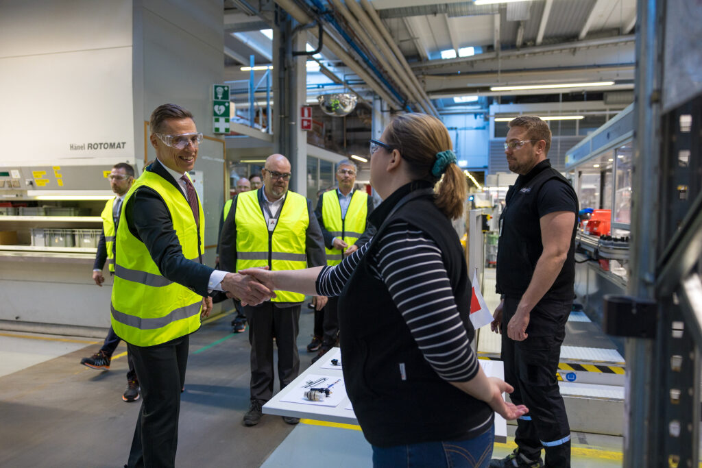Vierailun päätteeksi presidentti osallistui P2X Solutions Oy:n vihreän vedyn tuotantolaitoksen avajaisiin Harjavallassa. Tervehdyssanoissaan presidentti onnitteli P2X Solutions Oy:tä, Harjavaltaa ja koko Satakuntaa uudesta tuotantolaitoksesta.