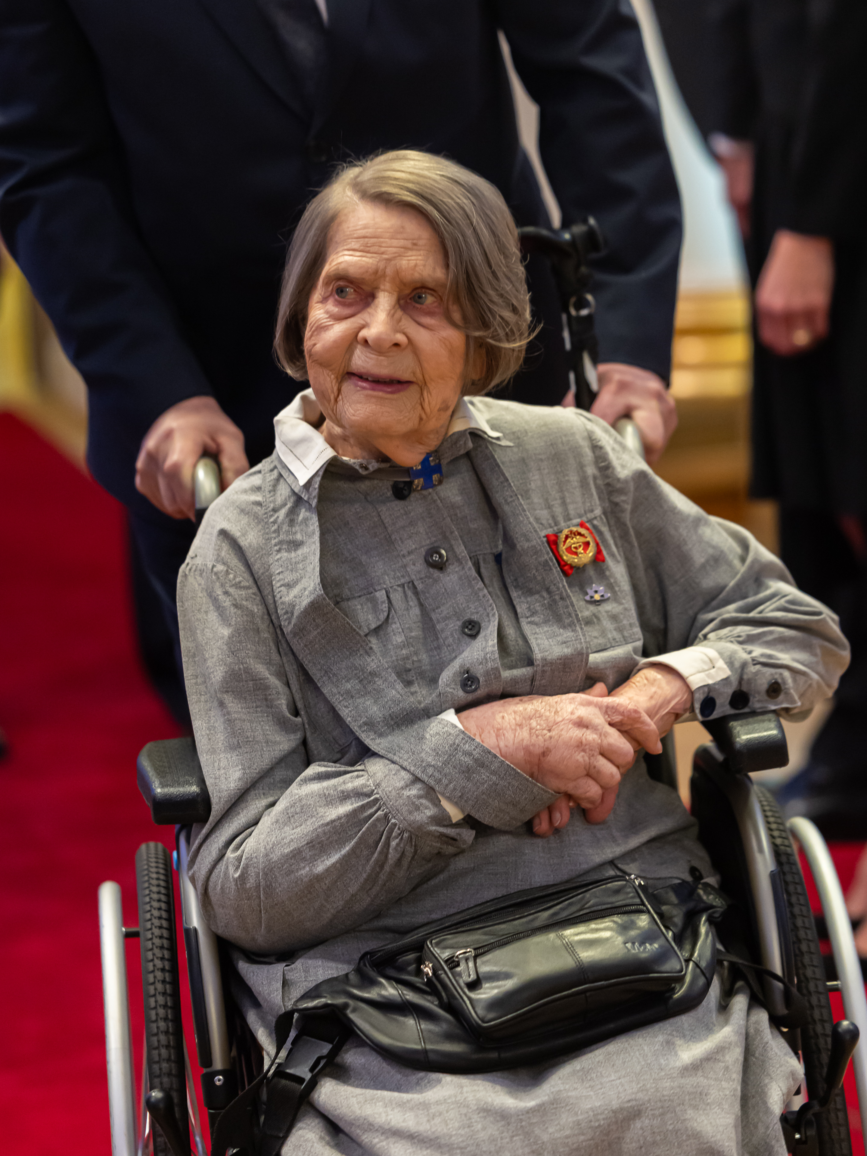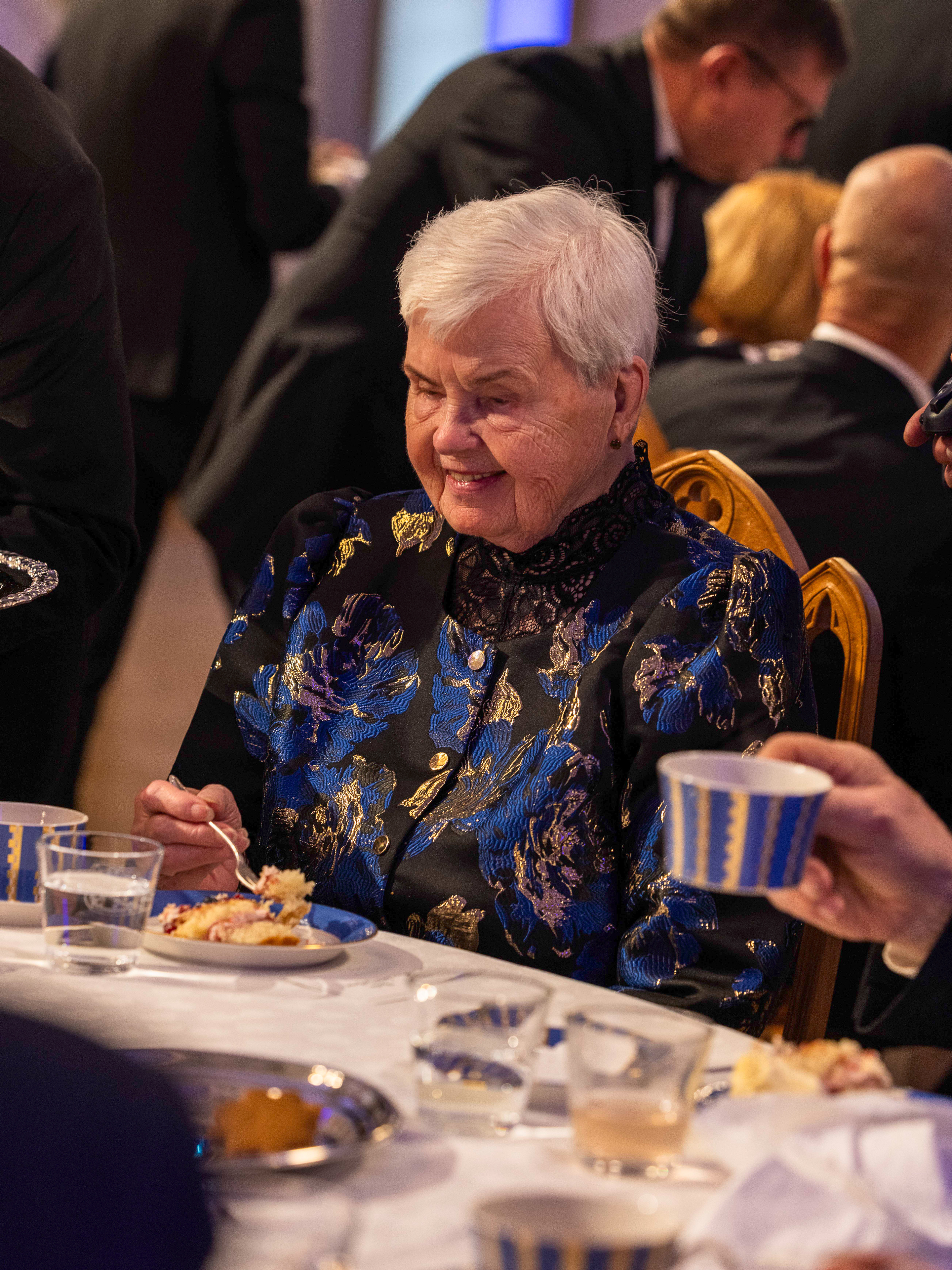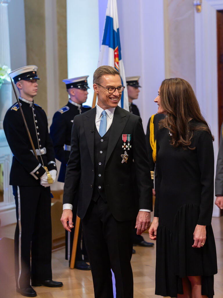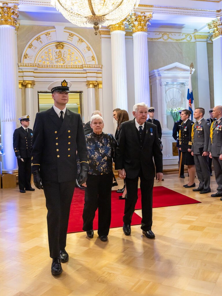 Tasavallan presidentti Alexander Stubb ja hänen puolisonsa Suzanne Innes-Stubb isännöivät veteraanien ja lottien kunniaksi järjestettyä juhlavastaanottoa Presidentinlinnassa tiistaina 2. joulukuuta 2025.