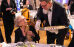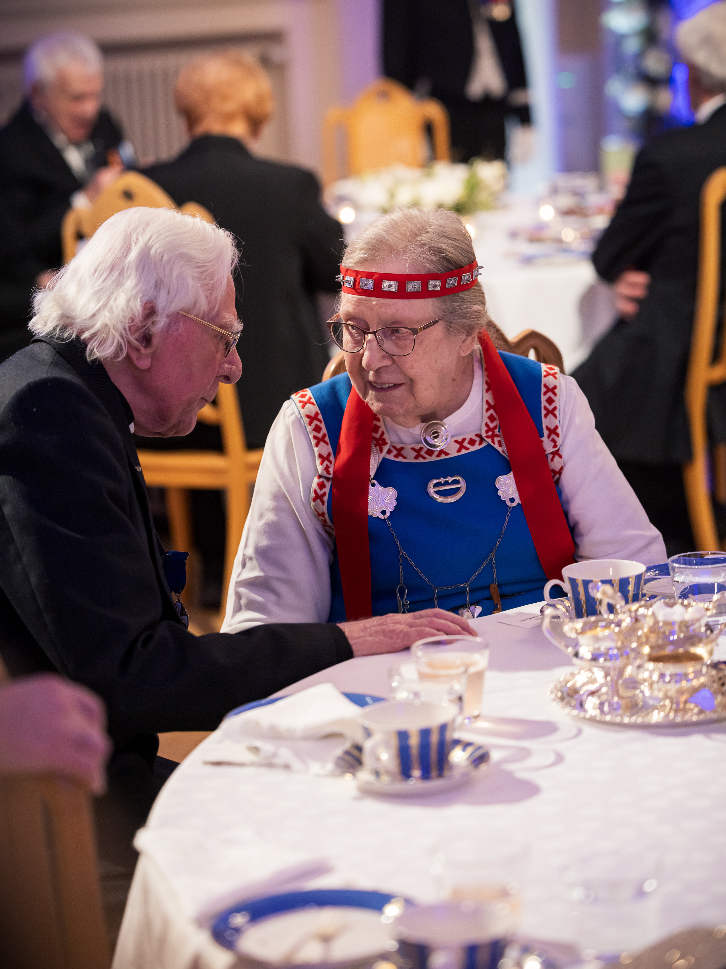 Kahvittelun lomassa presidenttiparilla oli mahdollisuus keskustella veteraanien ja lottien kanssa.