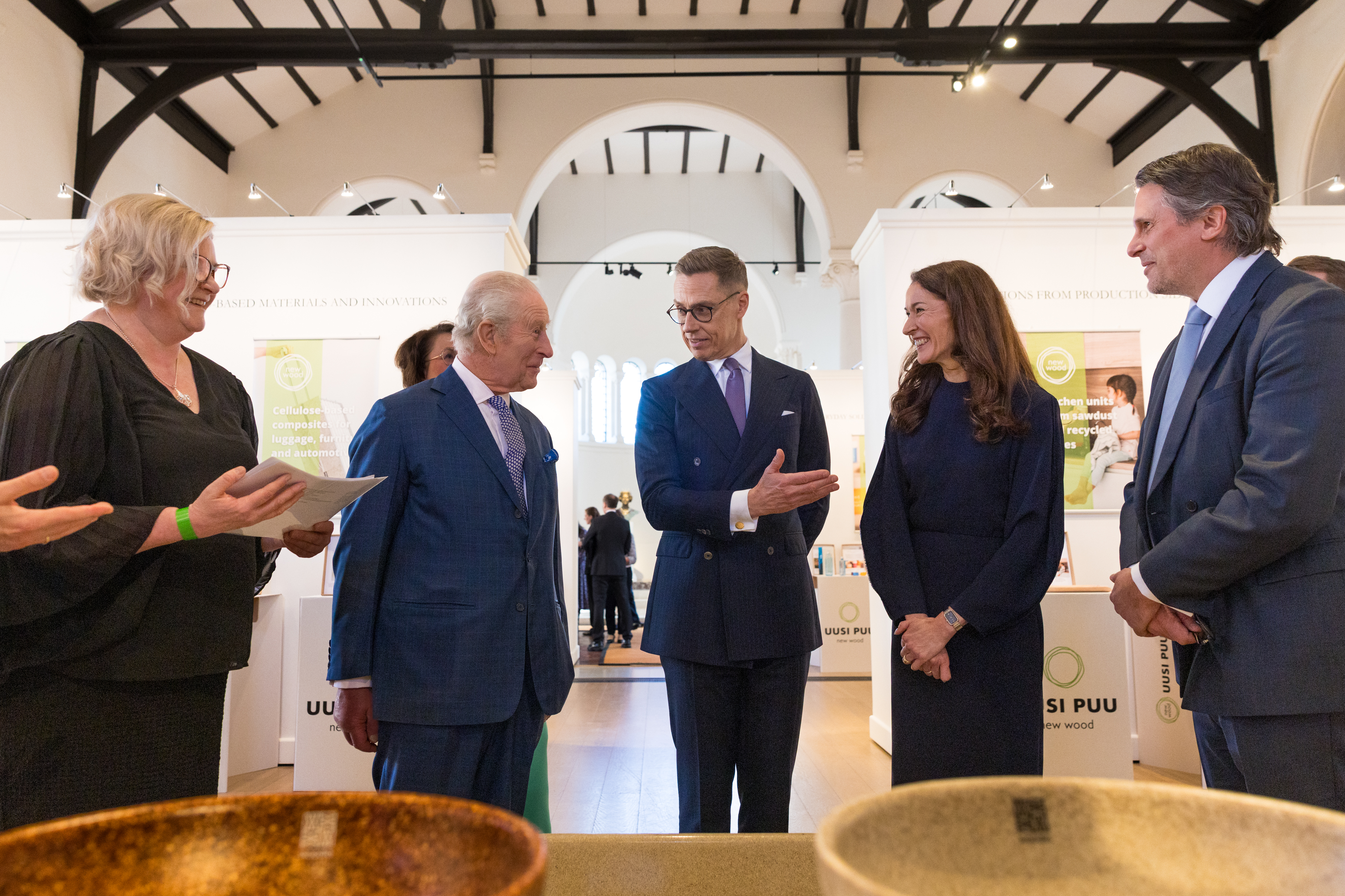 Presidenttipari ja kuningas Charles vierailivat suomalaisia metsäbiotalouden innovaatioita esittelevässä Uusi puu -näyttelyssä tiistaina 17. maaliskuuta. Näyttelyn jälkeen presidentti Stubb tapasi kuningas Charlesin Buckinghamin palatsissa.