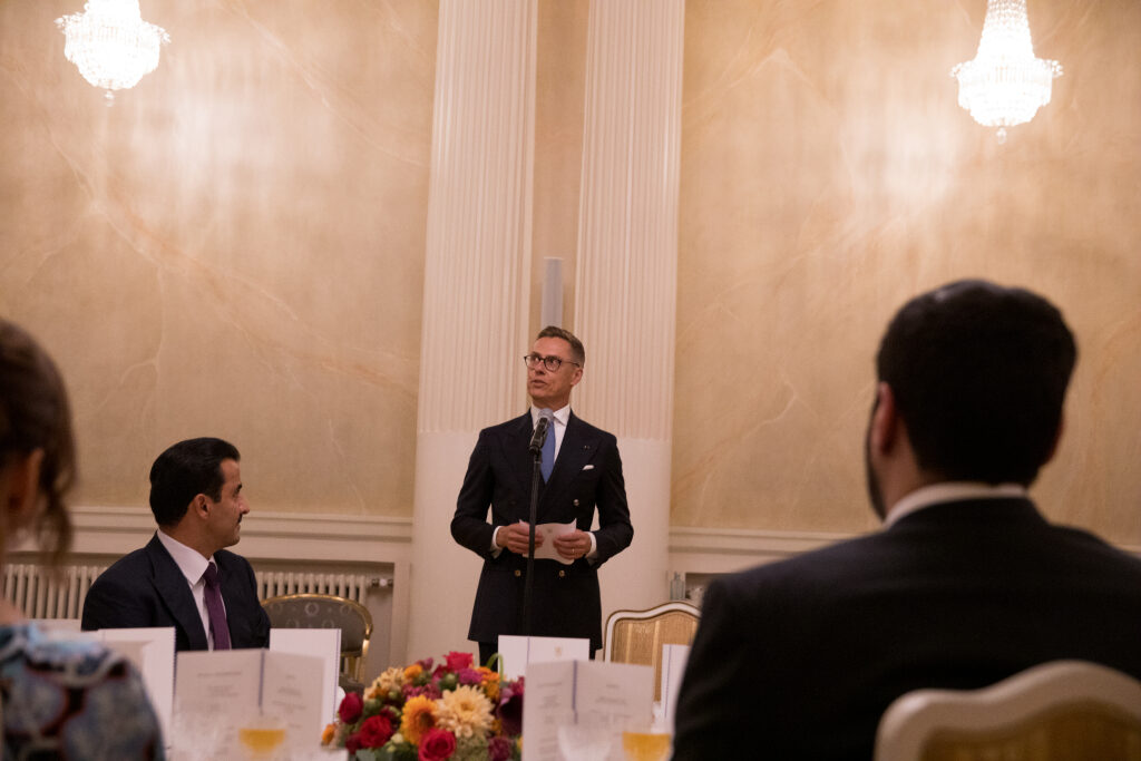 Suomen ja Qatarin diplomaattisuhteiden solmimisesta tulee tänä vuonna kuluneeksi 50 vuotta. Presidentti ja emiiri keskustelivat muun muassa yhteistyöstä rauhanvälityksen, investointien edistämisen, koulutuksen ja vihreän siirtymän saralla.
