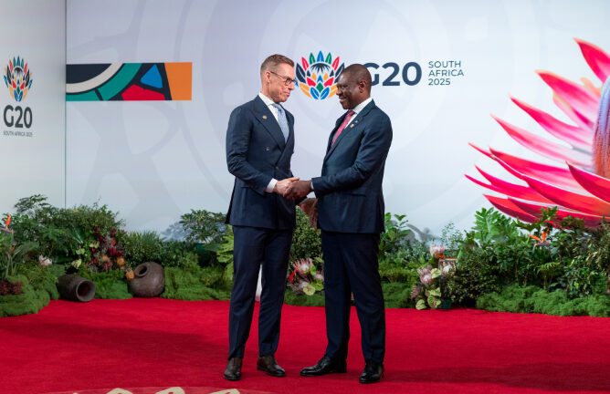 Tasavallan presidentti Alexander Stubb osallistui G20-maiden huippukokoukseen Johannesburgissa, Etelä-Afrikassa 22.-23. marraskuuta 2025.