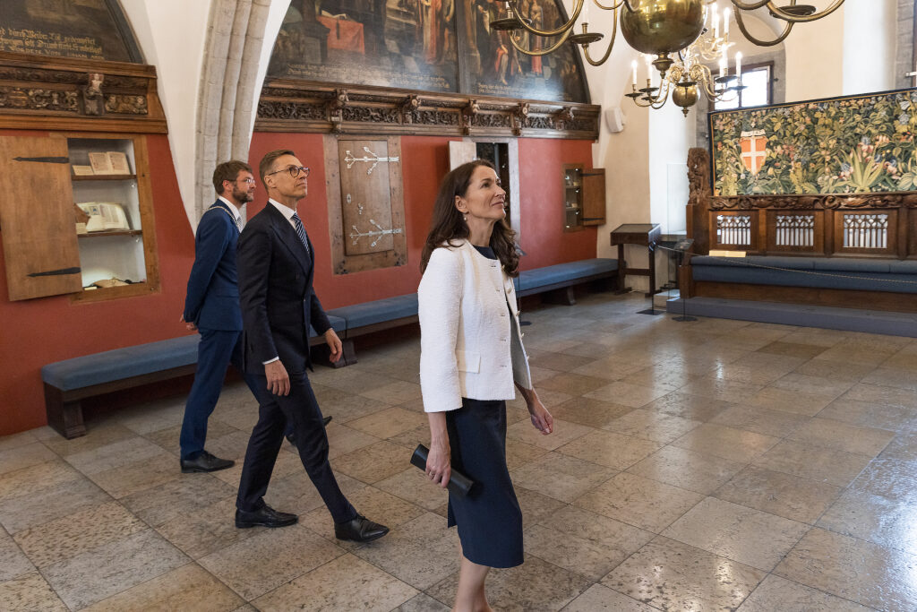 Presidenttipari tapasi myös Tallinnan kaupunginjohtaja Jevgeni Ossinovskin ja tutustui Tallinnan raatihuoneeseen.