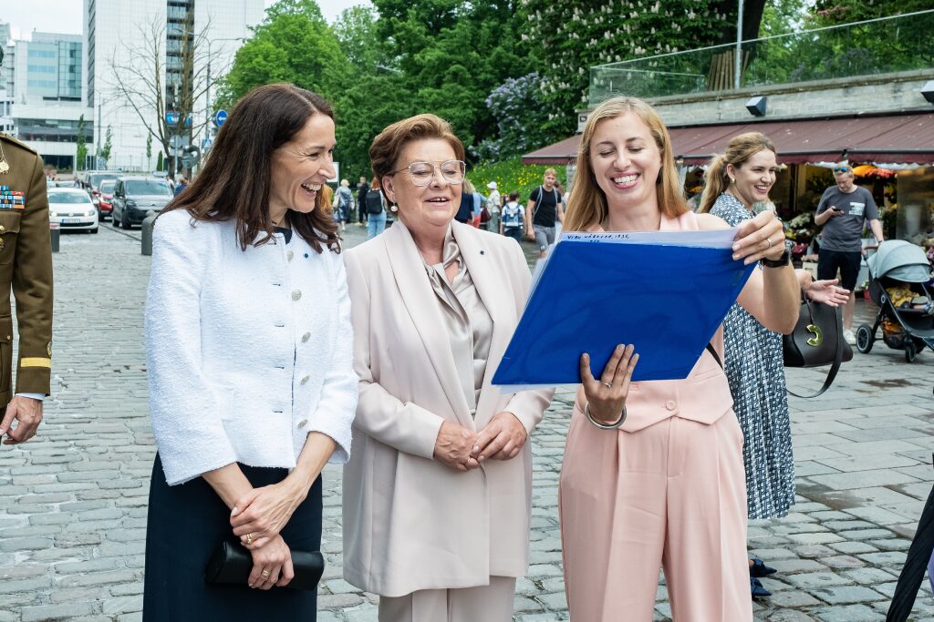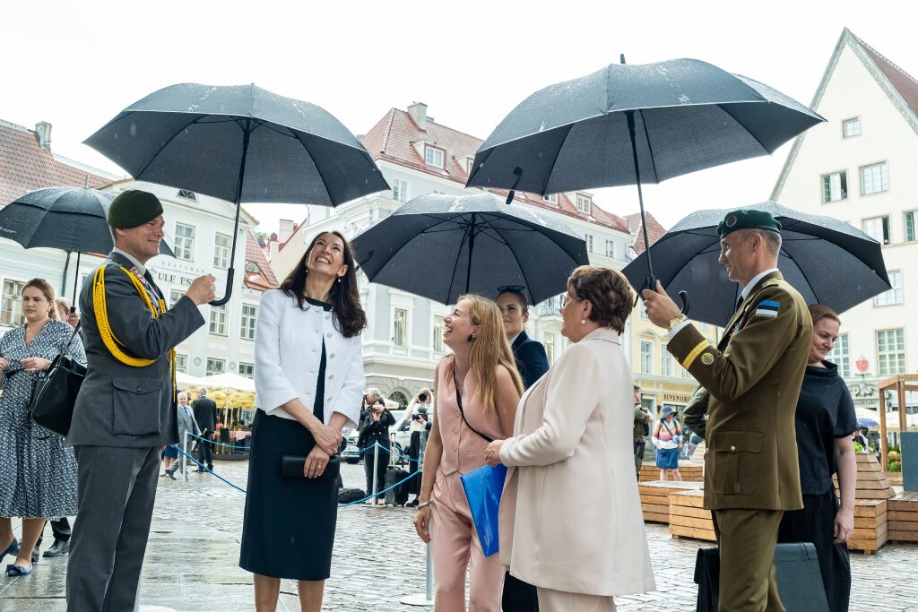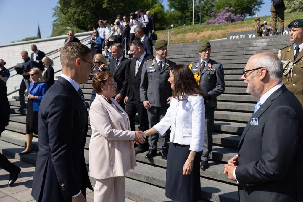 Viron presidentti Alar Karis ja hänen puolisonsa Sirje Karis ottivat presidenttiparin vastaan valtiovierailuun kuuluvin seremonioin Tallinnan Vapaudenaukiolla maanantaina 27. toukokuuta. Seremonien yhteydessä oli myös seppeleenlasku Viron vapaussodan muistomerkille.