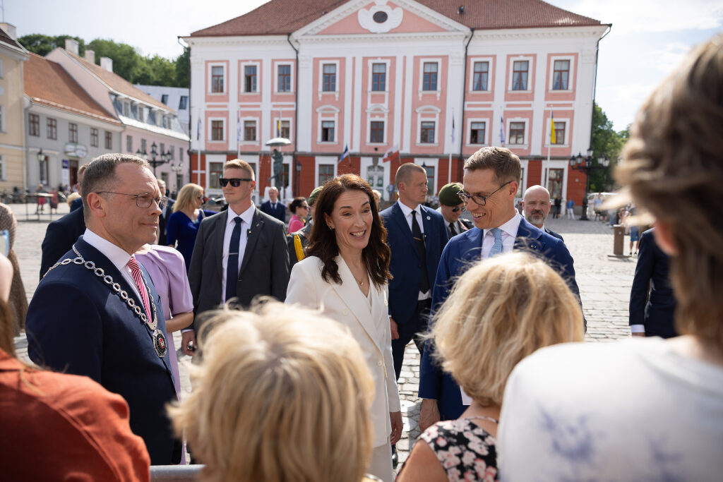 Iltapäivällä Suomen ja Viron presidenttiparit matkustivat Tarttoon, jossa heidät otti vastaan kaupunginjohtaja Urmas Klaas.