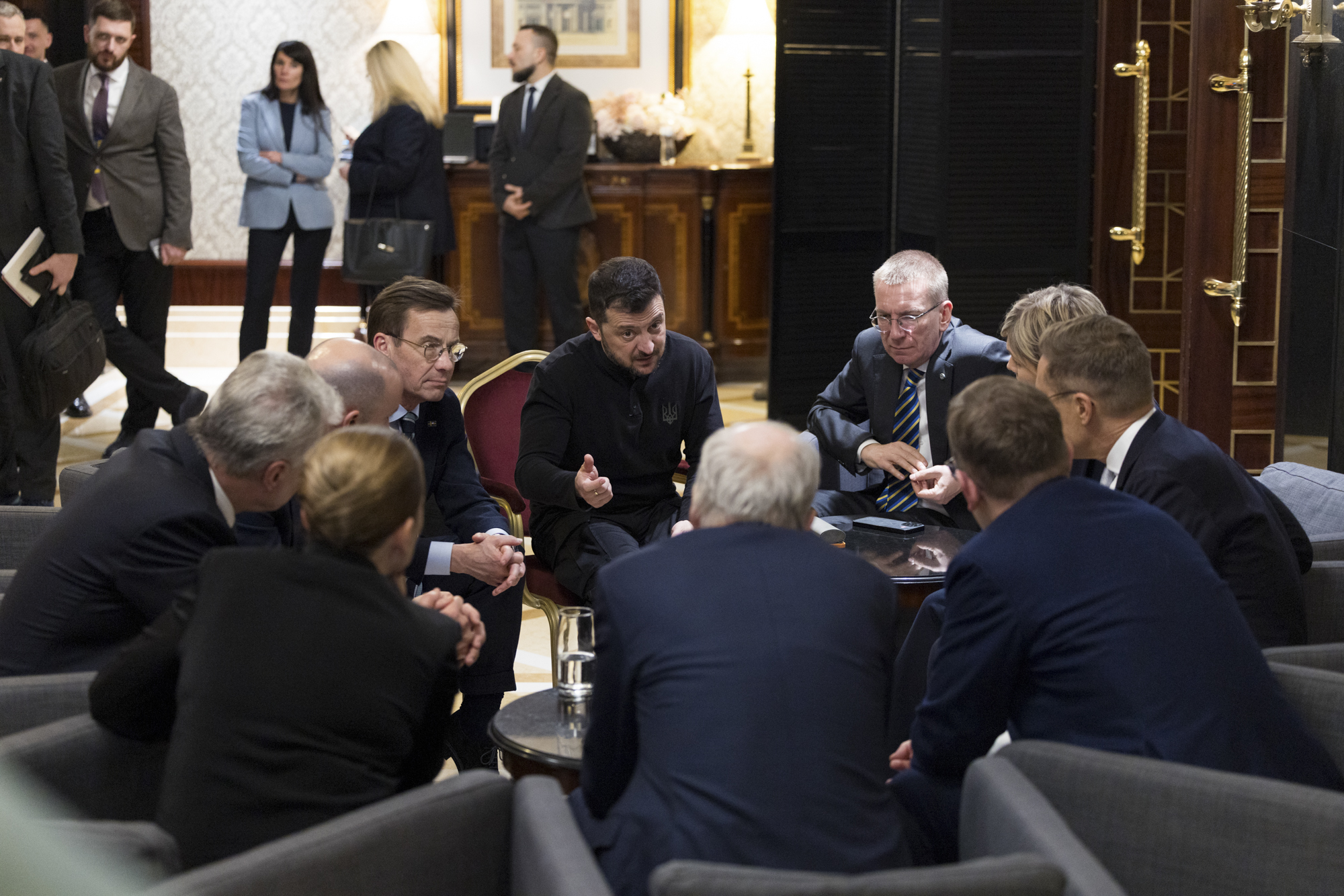Pohjoismaiden ja Baltian maiden yhteiskokous Ukrainan presidentti Volodymyr Zelenskyin kanssa. Kuva: Emmi Syrjäniemi / Tasavallan presidentin kanslia