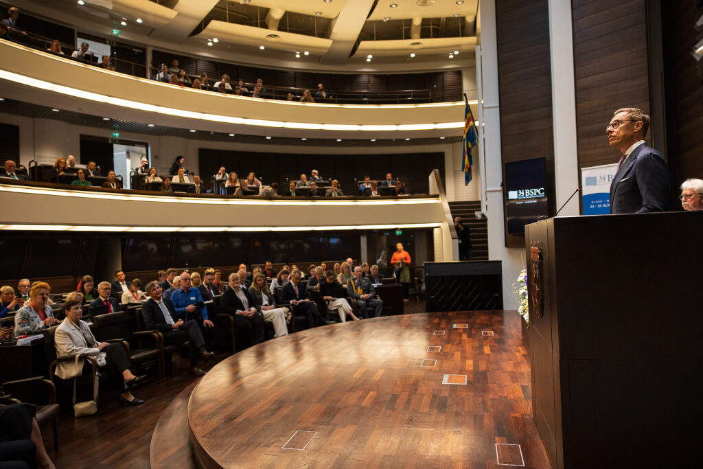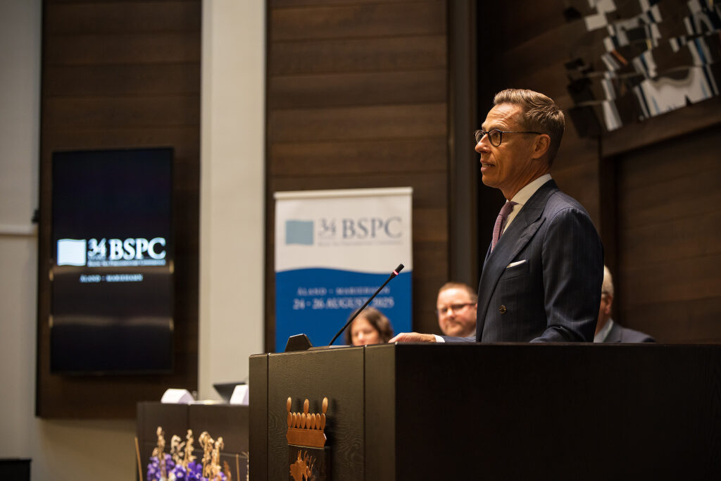 Aamupäivällä presidentti Stubb puhui Itämeren parlamentaarikkokonferenssin avausistunnossa (Baltic Sea Parliamentary Conference, BSPC) Maarianhaminassa. Kokouksen pääteemoja olivat Itämeren yhteistyö, turvallisuus ja ympäristö.