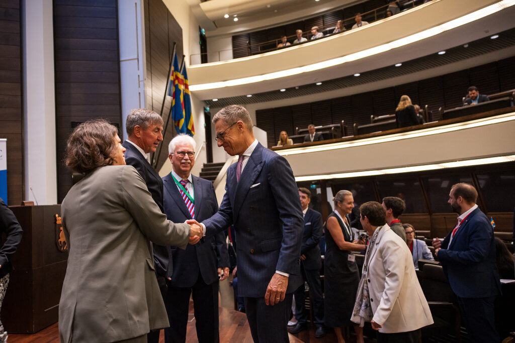 ”Ahvenanmaa on autonominen, demilitarisoitu ja ruotsinkielinen osa Suomea. Ahvenanmaan historia ja asema ovat erinomainen esimerkki siitä, miten monenvälisellä yhteistyöllä voidaan saavuttaa menestyksekkäitä ja kestäviä ratkaisuja”, presidentti sanoi.