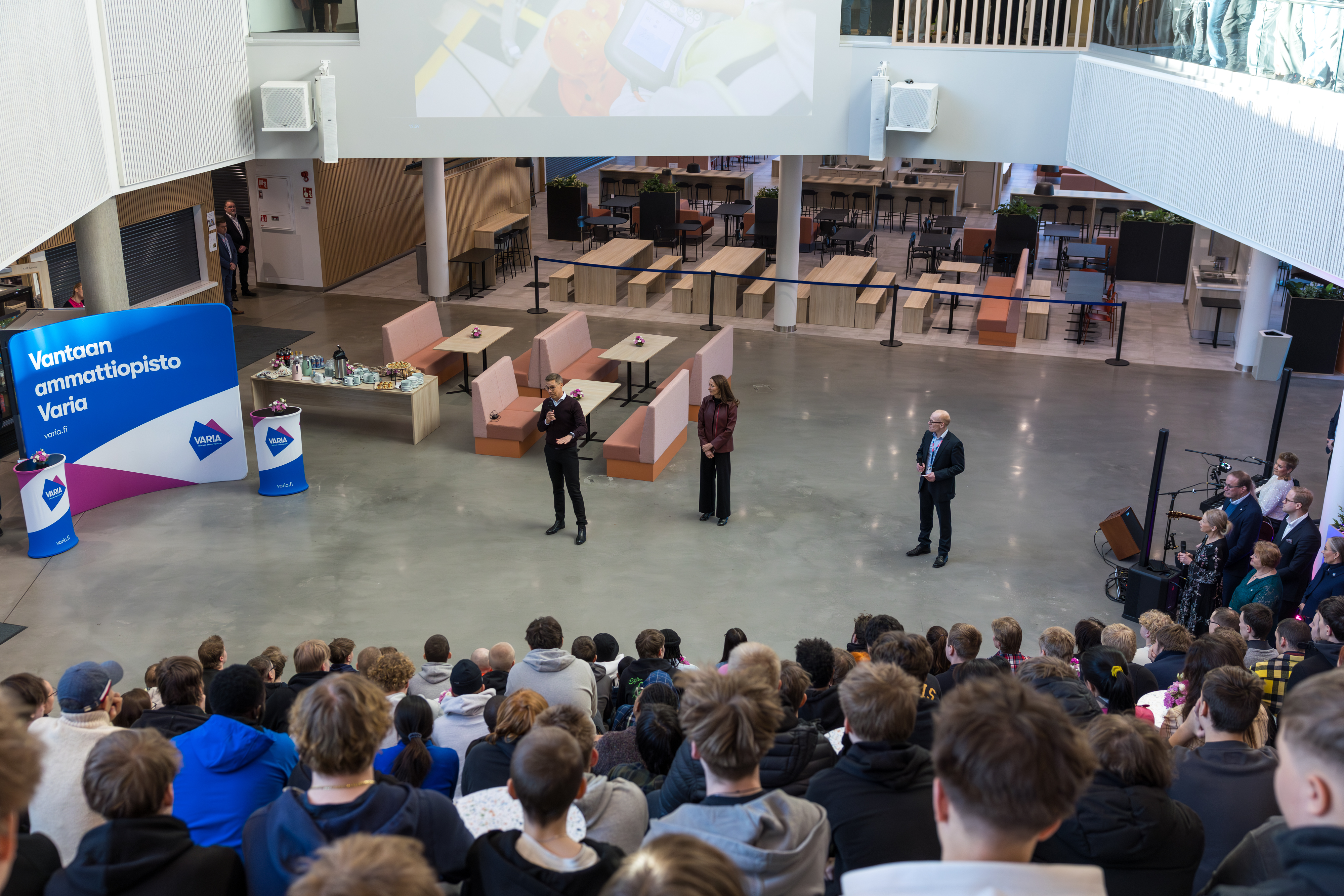 Iltapäivällä presidenttipari suuntasi ammattiopisto Variaan, jossa he tutustuivat lentokoneasennuksen ja logistiikan koulutuksiin. Kierroksen lomassa presidenttipari keskusteli oppilaiden kanssa.
