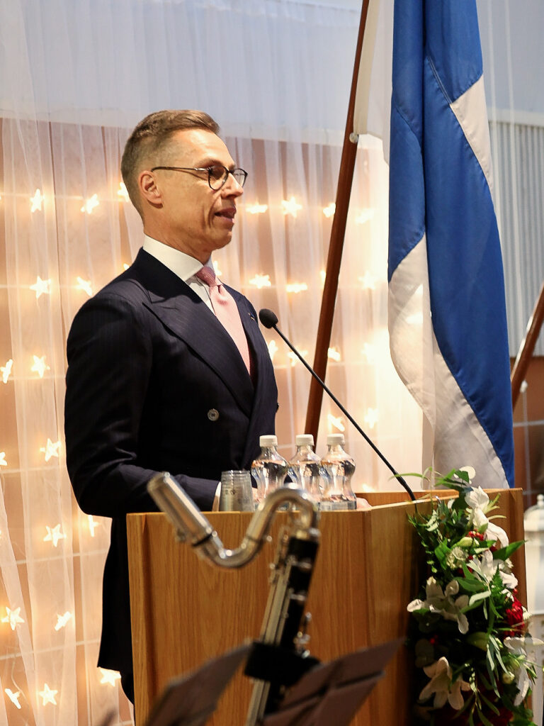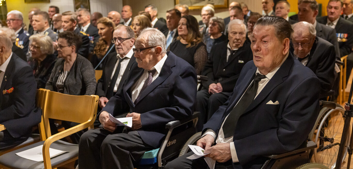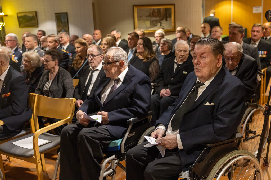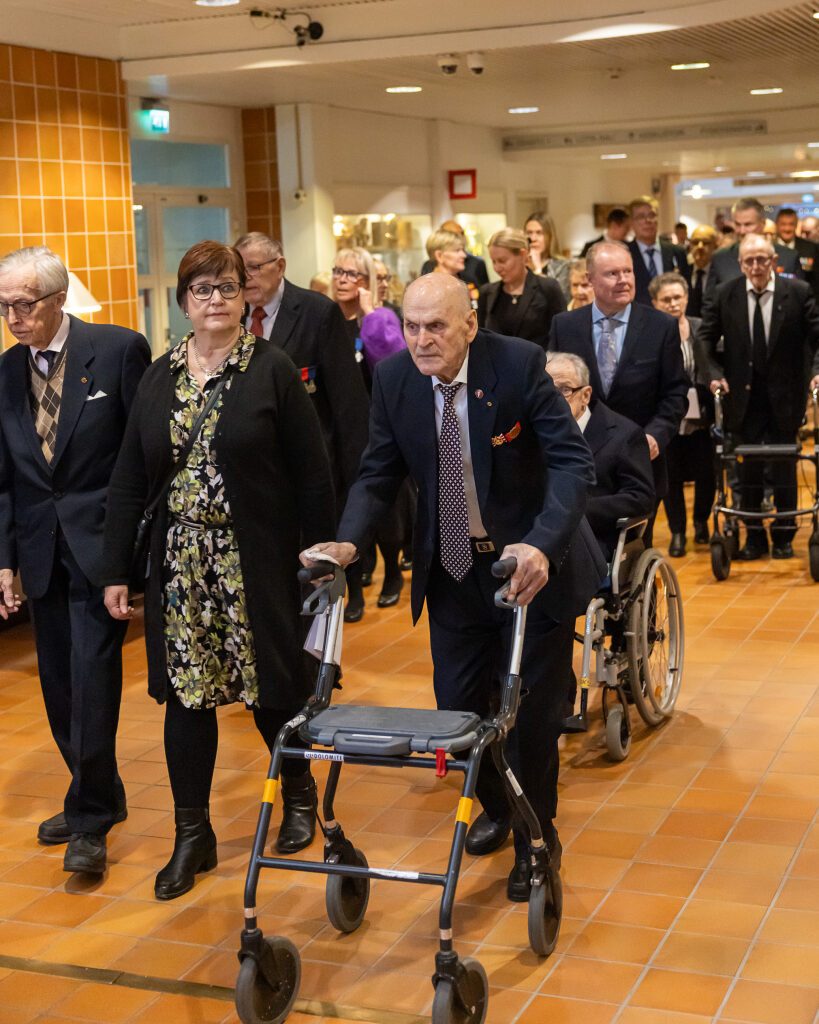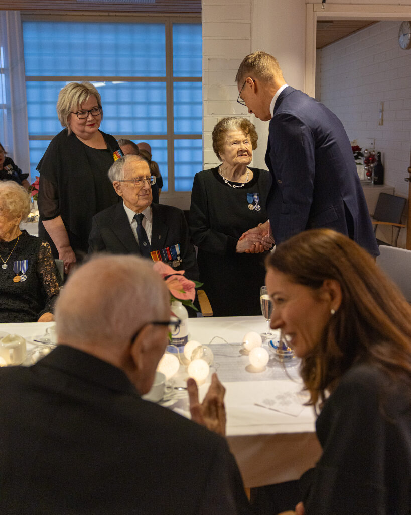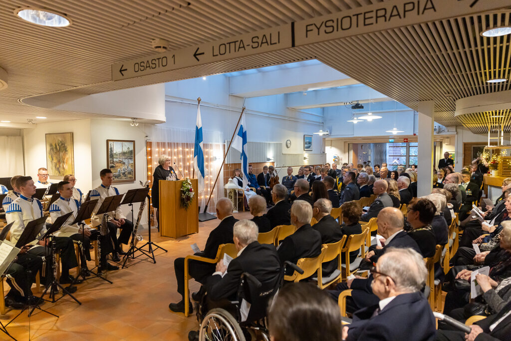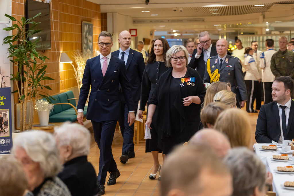 Tasavallan presidentti Alexander Stubb ja puoliso Suzanne Innes-Stubb osallistuivat Oulunkylän kuntoutuskeskuksen sotainvalidien, veteraanien ja veteraanipolven edustajien joulujuhlaan tiistaina 9. joulukuuta.