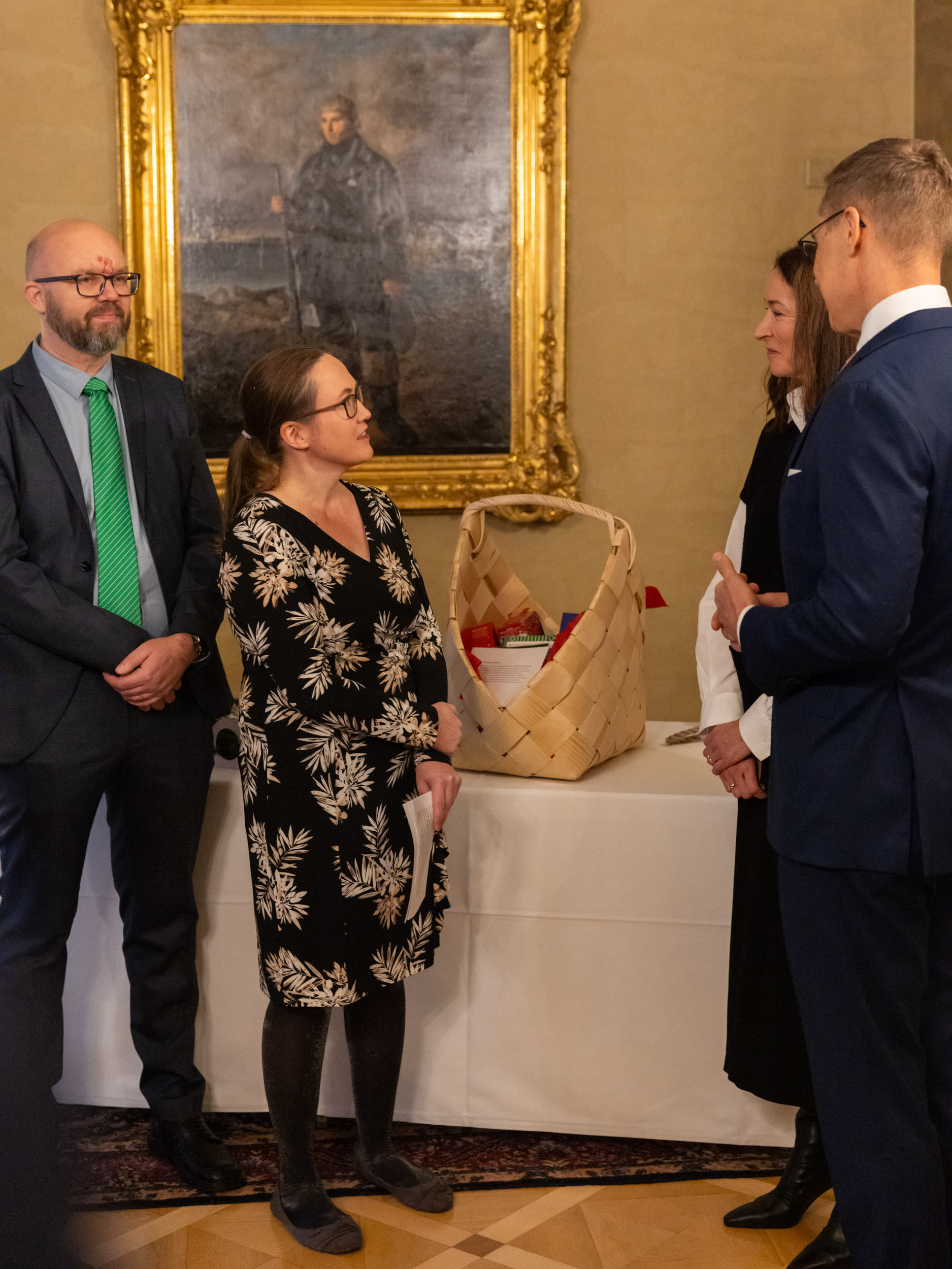 Tasavallan presidentti Alexander Stubb ja hänen puolisonsa Suzanne Innes-Stubb ottivat vastaan perinteiset joulutervehdykset Presidentinlinnassa perjantaina 19. joulukuuta 2025.