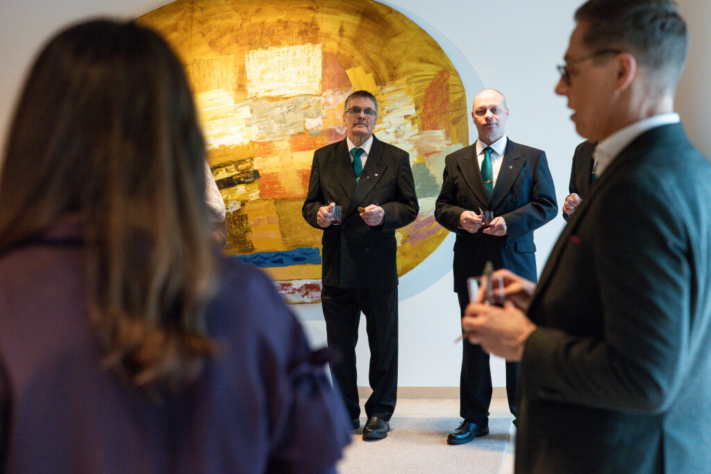 De första som framförde sina hälsningar till presidentparet var Folkhälsan och Finlands Lucia Daniela Owusu med sin kör. Efter framträdandet tog presidentparet emot hälsningar från forststuderande vid Helsingfors universitet och forststuderandenas granförsäljare och Marttila gård.