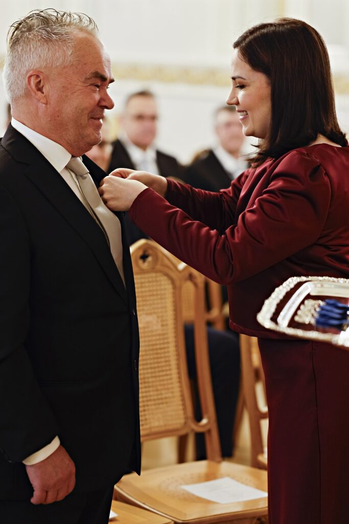 Tasavallan presidentti Alexander Stubb myönsi kasvatustyössä ansioituneille isille ensimmäistä kertaa valtiollisen kunniamerkin isänpäiväjuhlassa Presidentinlinnassa sunnuntaina 9. marraskuuta 2025.