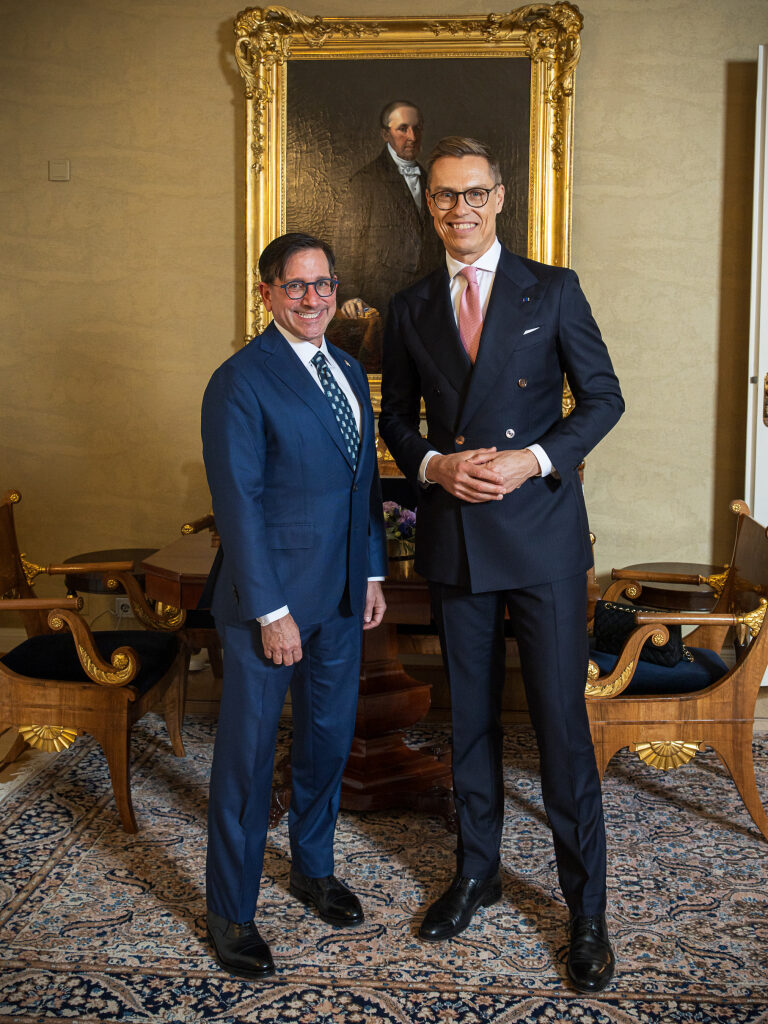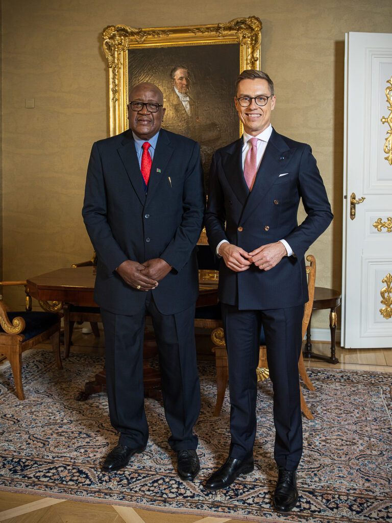 Presidentti Alexander Stubb ja Yhdysvaltain suurlähettiläs Howard Brodie. Kuva: Matti Porre/Tasavallan presidentin kanslia Presidentti Alexander Stubb ja Espanjan suurlähettiläs Manuel Montobbio de Balanzó. Kuva: Matti Porre/Tasavallan presidentin kanslia Presidentti Alexander Stubb ja Namibian suurlähettiläs Gebhard Benjamin Kadangaja. Kuva: Matti Porre/Tasavallan presidentin kanslia