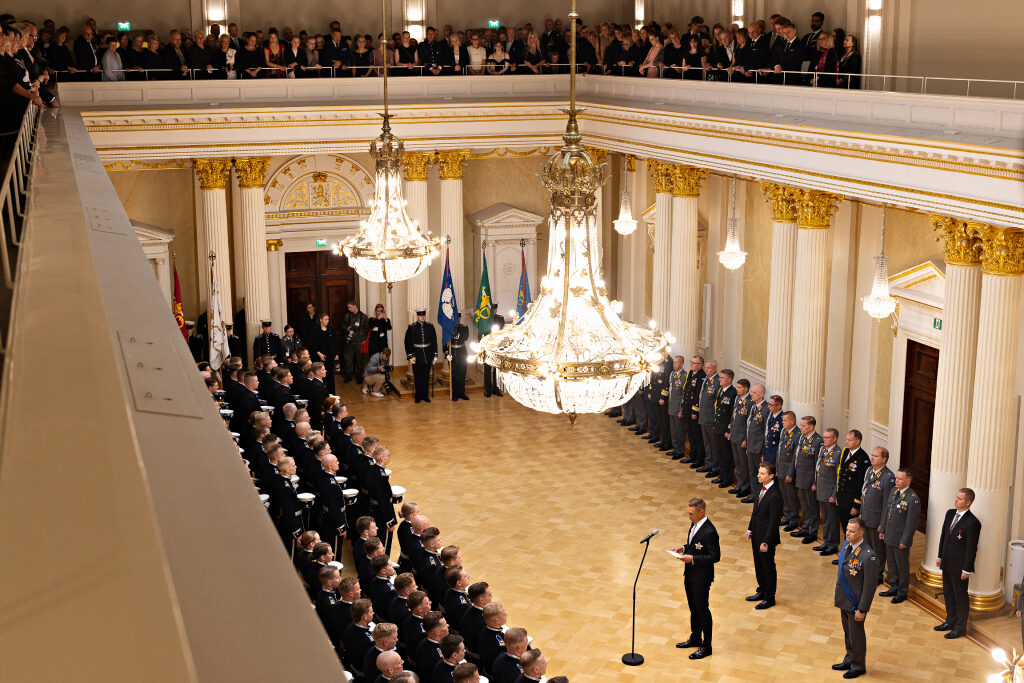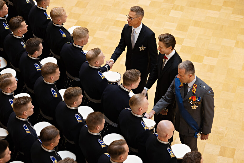 ”Me emme provosoi, emme myöskään provosoidu. Mutta on selvää, että kestävän rauhan takeeksi tarvitsemme vahvaa puolustuskykyä. Te olette tulevina vuosikymmeninä puolustuksemme perusta ja vaalija”, presidentti Stubb sanoi.