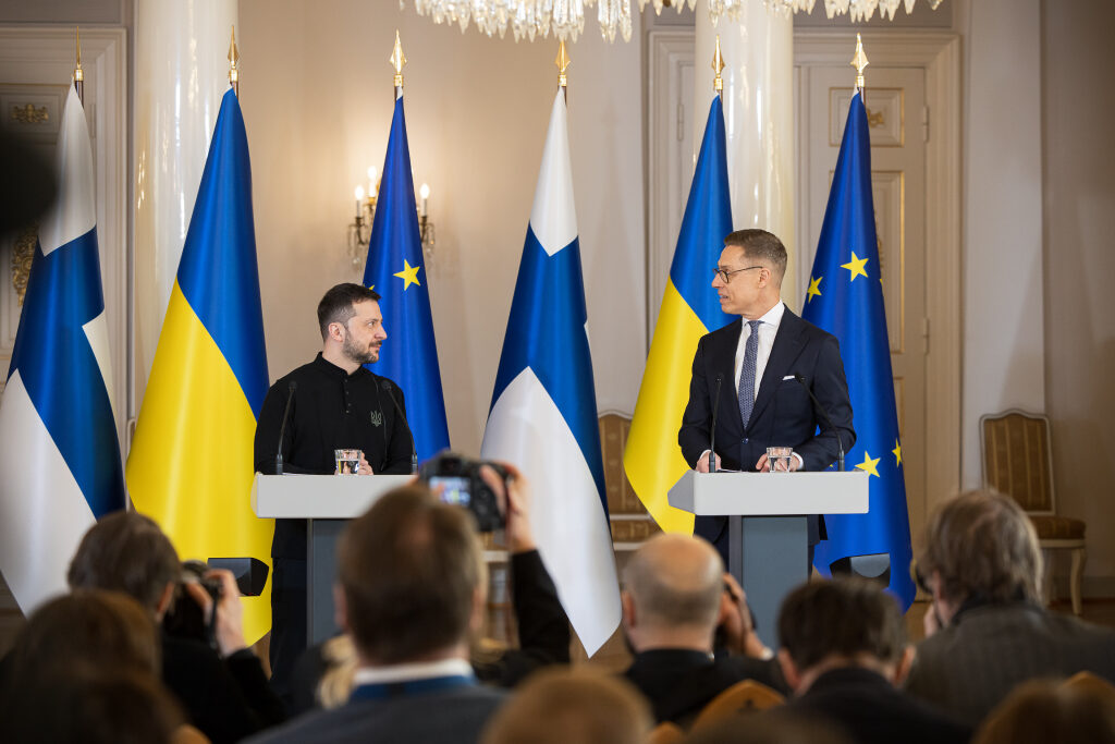 Presidentti Stubb ja presidentti Zelenskyi kertoivat lehdistötilaisuudessa aamupäivän keskusteluistaan. Presidentti Stubbin mukaan ensimmäinen askel tiellä kohti rauhaa on tulitauko.