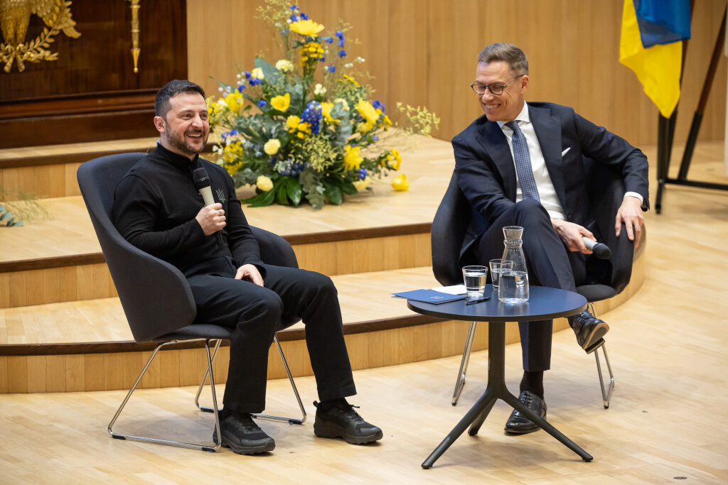 Iltapäivällä presidentti Stubb ja presidentti Zelenskyi puolisoineen tapasivat opiskelijoita Helsingin yliopistolla ja osallistuivat keskustelutilaisuuteen.