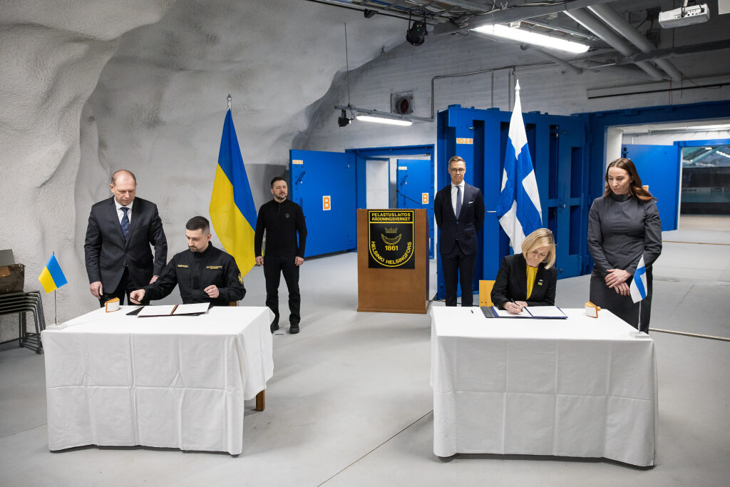 Päivän päätteeksi oli ohjelmassa tutustuminen Merihaan kallioväestönsuojaan, jossa presidentti Zelenskyille esiteltiin Suomen väestönsuojajärjestelmää. Tutustumiskäynnin yhteydessä sisäministeri Mari Rantanen ja Ukrainan strategisten teollisuudenalojen ministeri Herman Smetanin allekirjoittivat yhteistyölinjauksen väestönsuojiin liittyvän yhteistyön tiivistämisestä.
